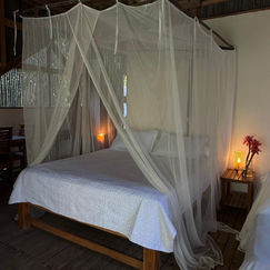 Todos nuestros bungalós disponen de minibar, baño privado, abanicos , holgados mosquiteros, caja de seguridad y una terraza dotada con hamaca, juego de comedor, ofreciendo un área adicional para contemplar el exterior, compartir o realizar tareas de trabajo ya que cuentas con wifi satelital . También poseen luz solar y eléctrica, con un sistema de tomas e iluminación accesible y funcional. Cada uno lleva un nombre inspirado en el universo marino.